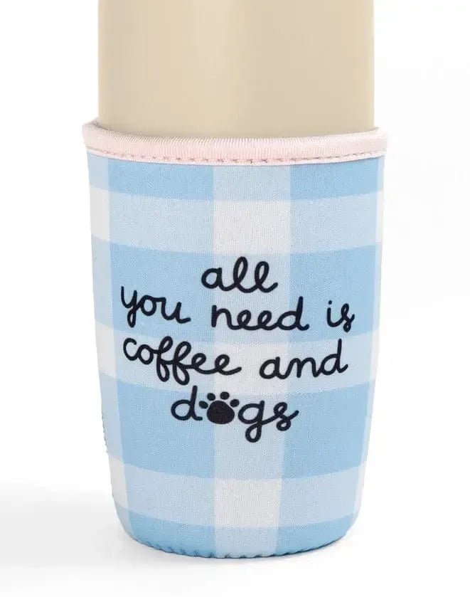 Keep your drinks cool and your hands warm with the Coffee & Dogs Coffee Sleeve! Featuring a fun blue gingham design and the hand-lettered phrase 'all you need is coffee and dogs,' this sleeve is perfect for any dog lover or pet parent. It's ideal for iced coffees, teas, and other beverages. Great as a gift for friends, family, or yourself, this coffee sleeve adds a touch of canine charm to your daily routine.