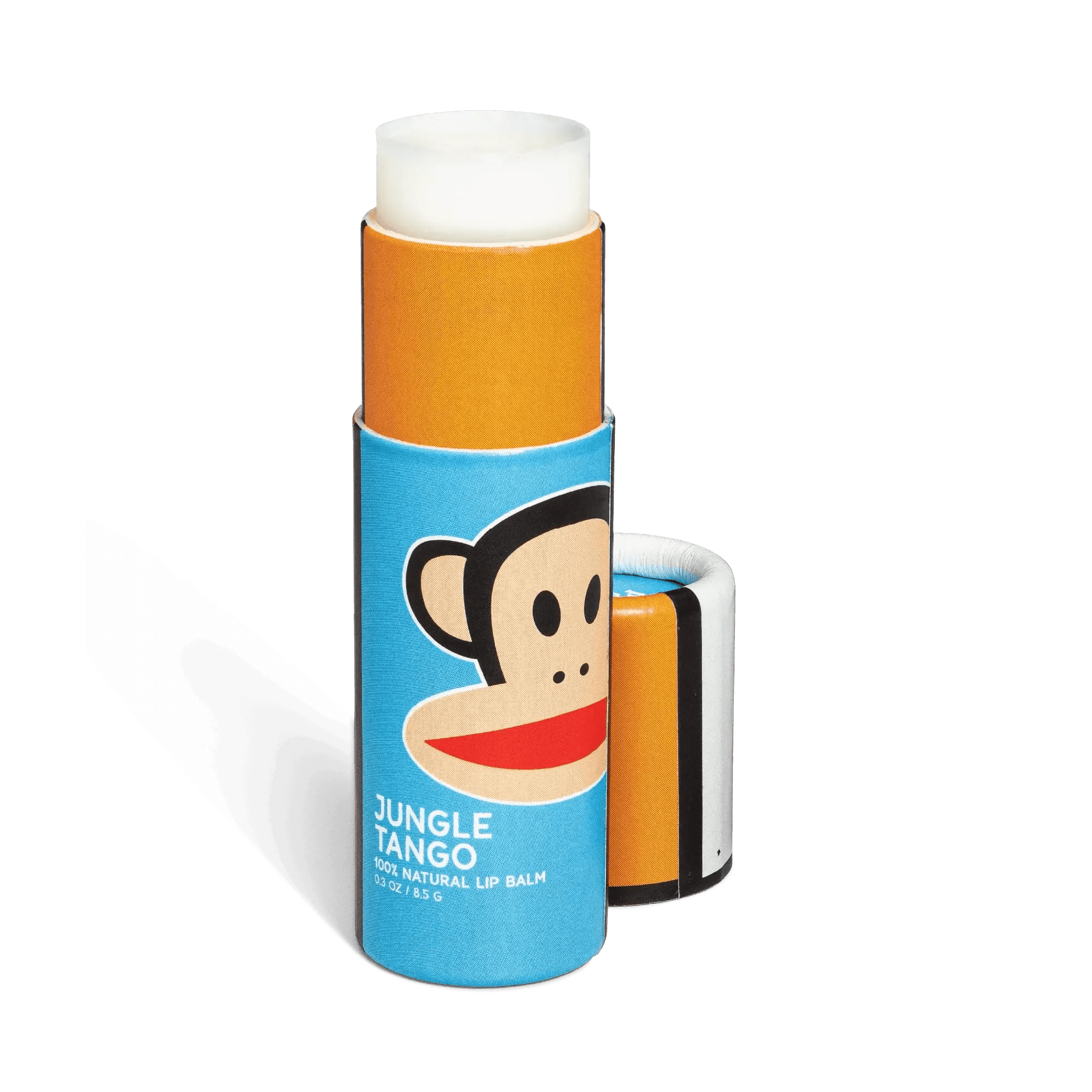Step back into the early 2000s with the Poppy & Pout limited-edition Paul Frank Jungle Tango Lip Balm! This 100% natural throwback blends tropical fruit fusion and banana into a flavor that's bold and fun. Smooth, buttery, and 100% natural, it’s the perfect pop of moisture for your lips, whether you’re heading to the mall, doodling in gel pen, or making your AIM away message extra cryptic. Each lip balm comes in a custom cardboard Paul Frank blister box.