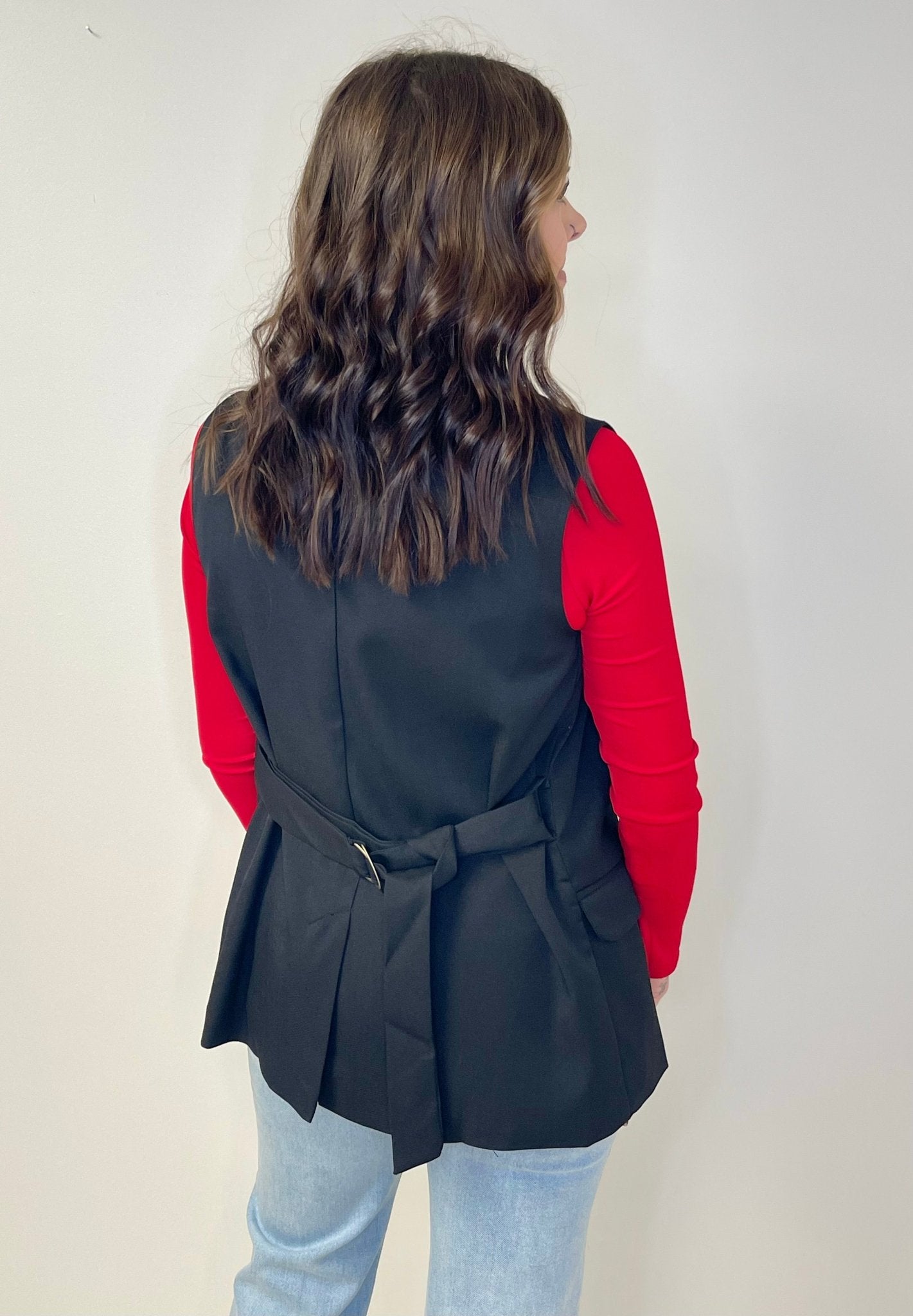 The Belted Black Button Vest by Sadie & Sage offers versatile styling for any occasion. Wear it layered over a mesh top for dimension, solo with a cami for understated elegance, or pair with denim for casual ease. Dress it up with black pieces for a polished, sophisticated look. The belt detail adds definition and ensures this piece transitions seamlessly from day to night.