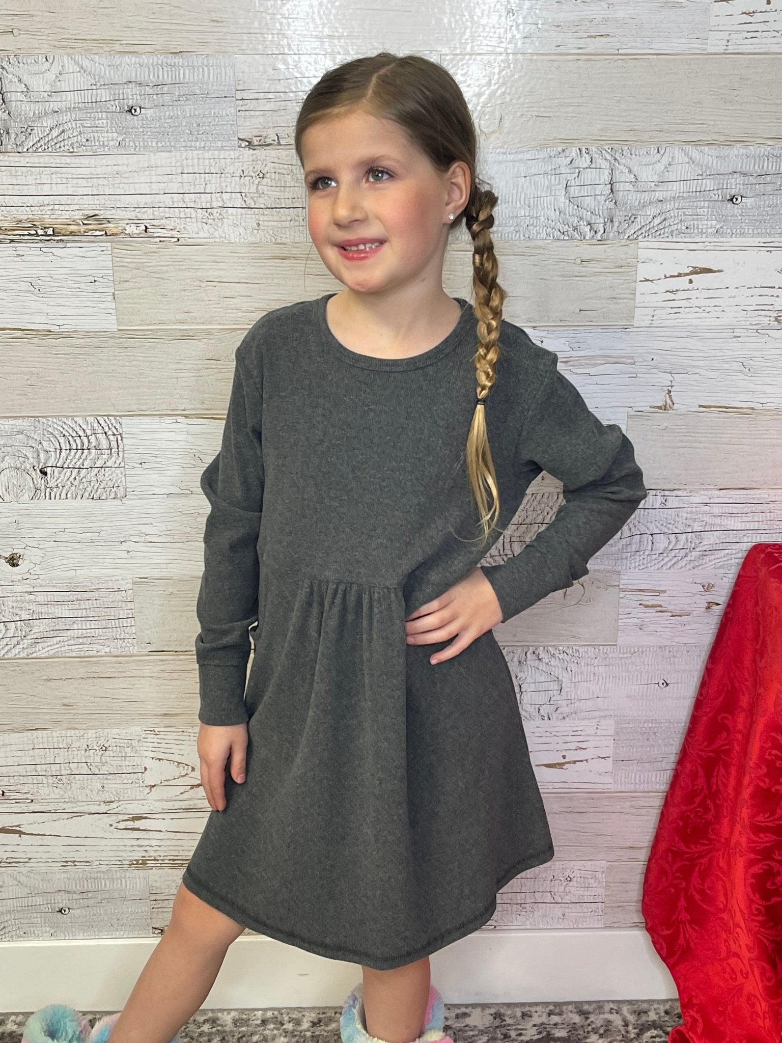 This Ribbed Heather Grey Dress by Little Bipsy offers both comfort and style. With its cozy fabric and stylish ribbed design, it's the perfect addition to your little girls wardrobe. Perfect for any occasion, it's a must-have for a fun winter outfit.