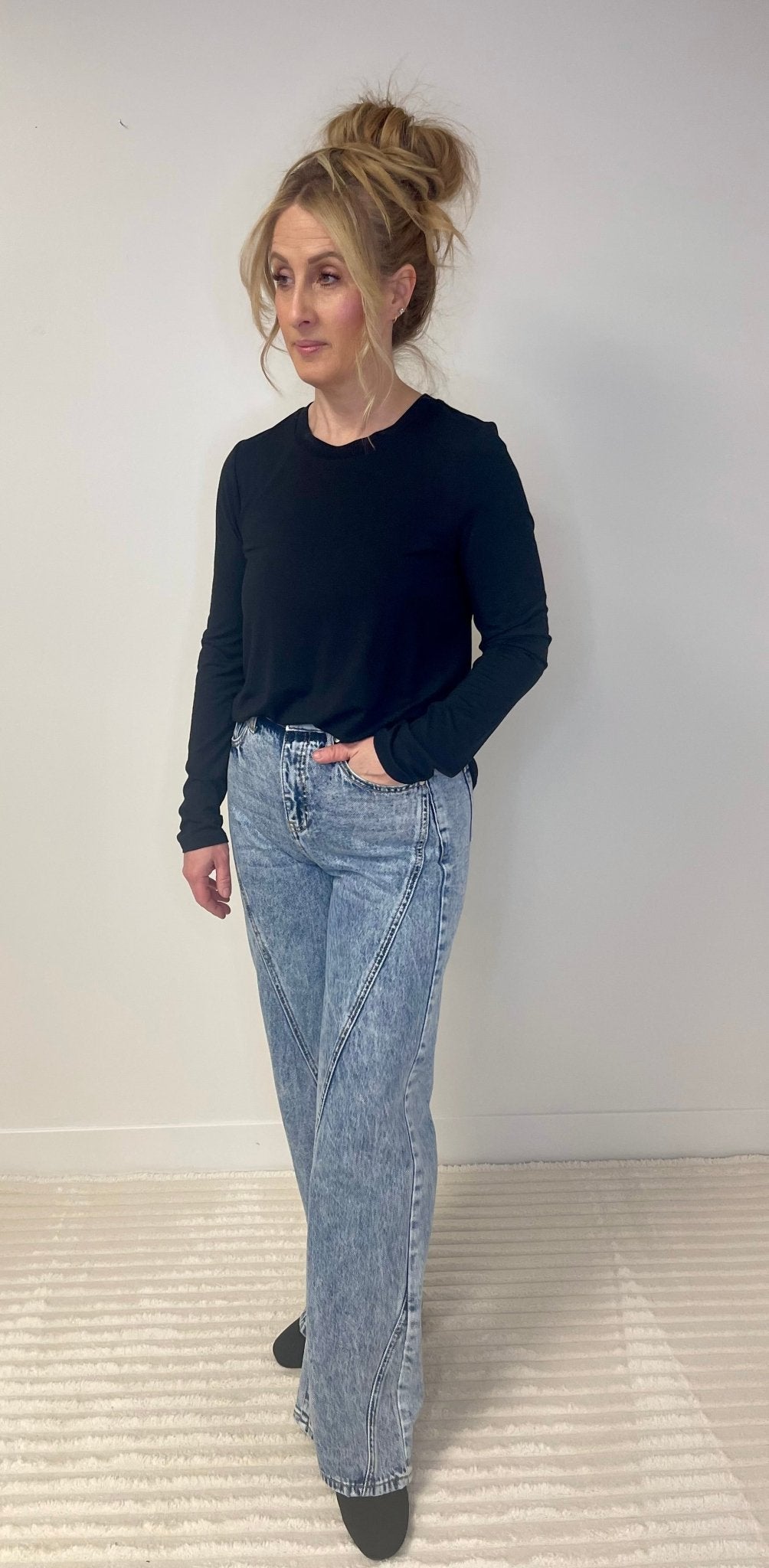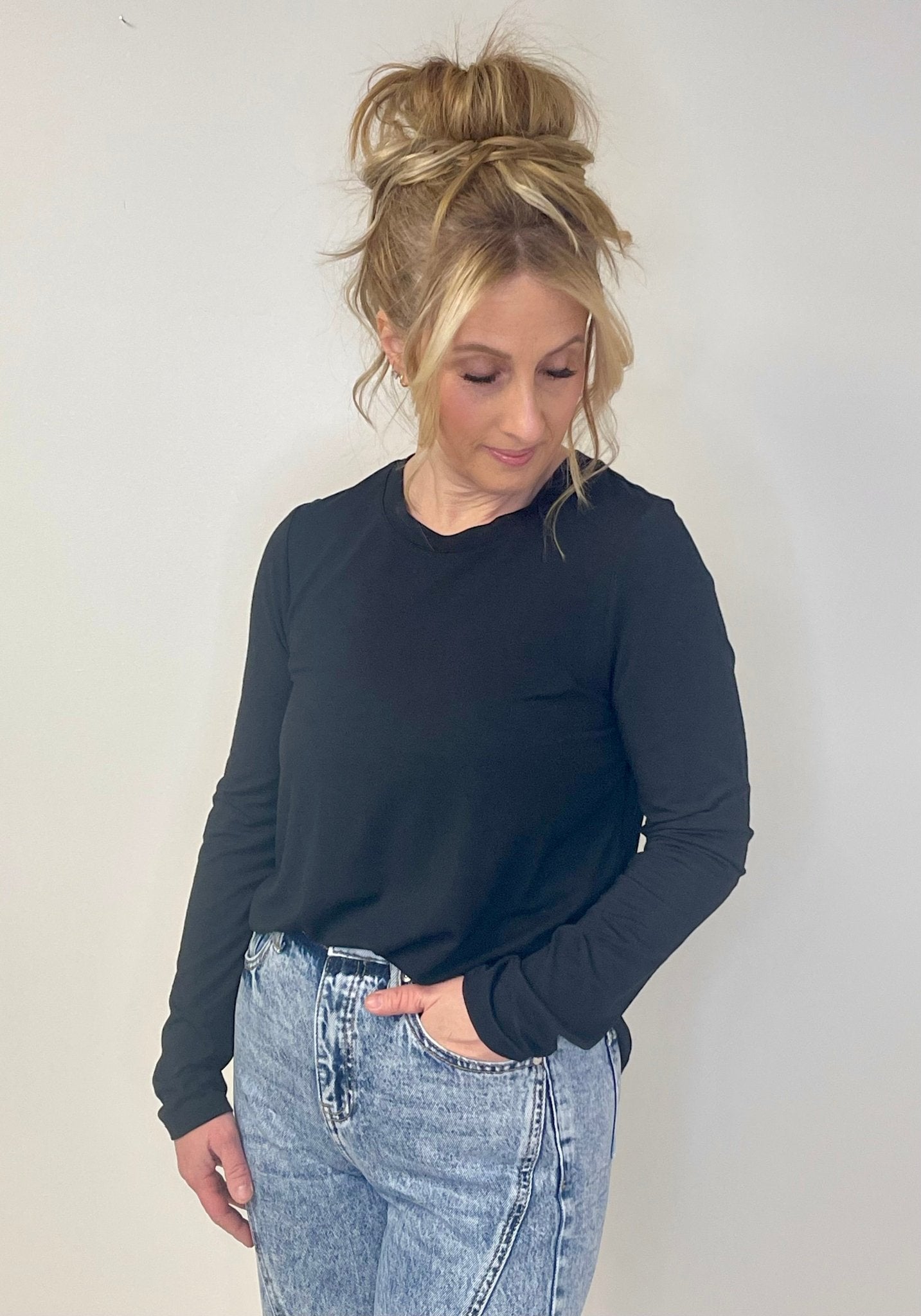Elevate your everyday wardrobe with the Stassia Black Top by Thread & Supply—a layering piece that transcends basic styling. This long-sleeve essential features thoughtful construction designed to work beautifully on its own or as a versatile foundation beneath jackets, cardigans, and blazers. The quality fabric creates a polished look that transitions seamlessly from casual days to professional settings.