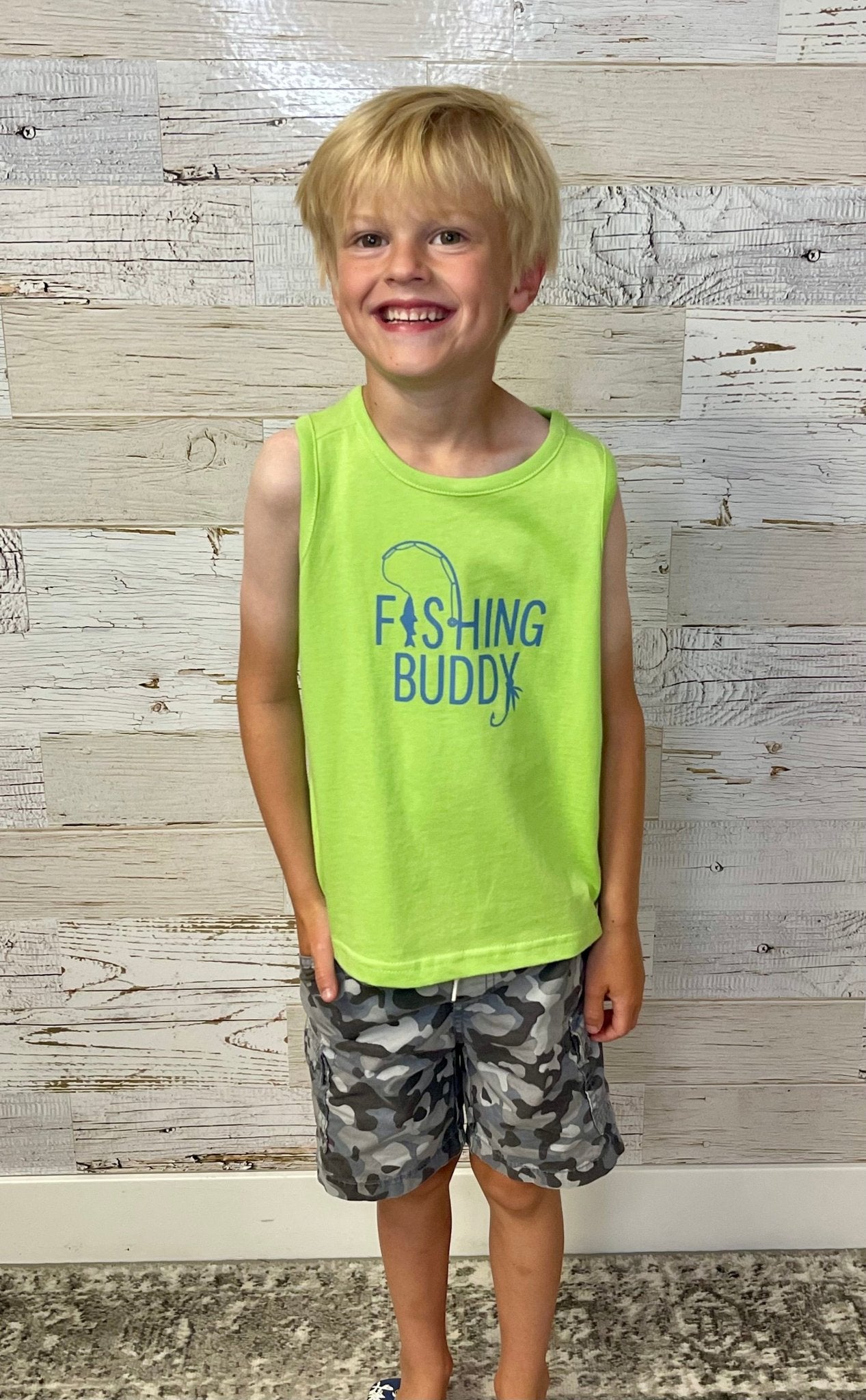 The Fishing Buddy Tank is the perfect companion for any young angler. Designed with a fun, relaxed fit, it keeps kids comfortable during all their fishing adventures. Whether casting lines or exploring the great outdoors, this tank adds a splash of playful style to every catch.
