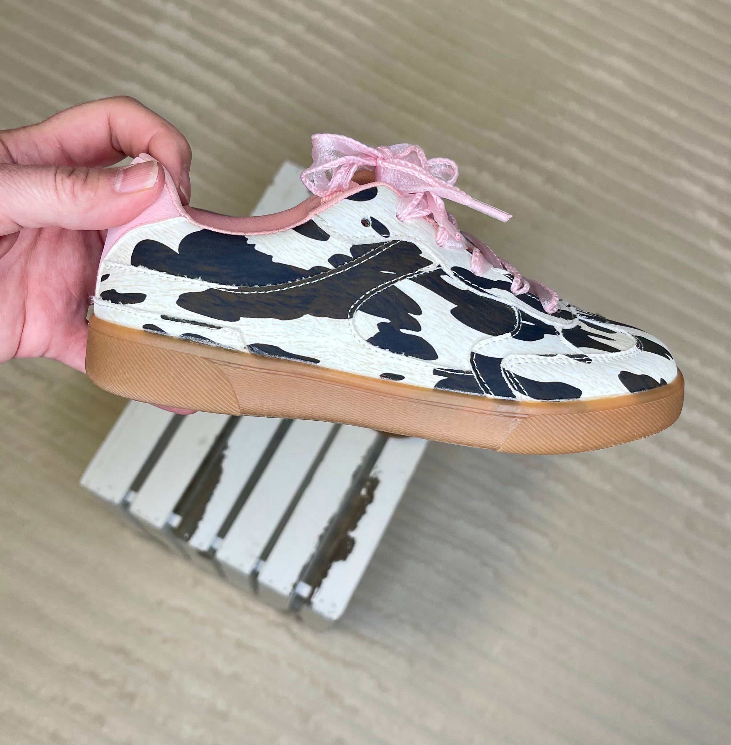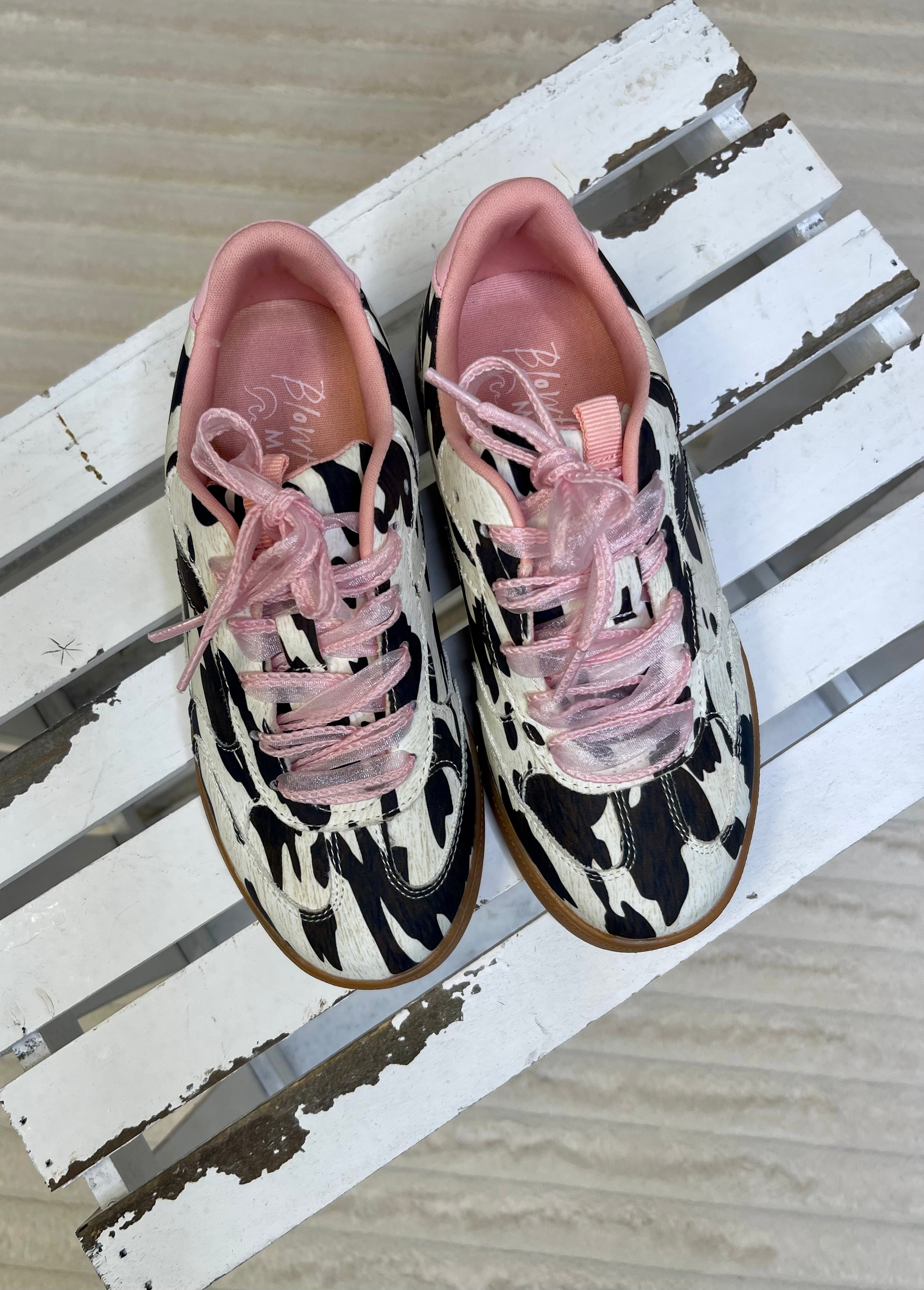 Your girl will love the Cow Print Sneakers by Blowfish.  The fun cow print fabric & pink ribbon laces are both on trend.  They feature a T-toe design, including a tongue pull tab for vintage appeal, this clean sneaker has laid-back style covered. The foam insole cushions, while the outsole adds a bit of bounce.  And the best part is there is a matching pair for Mom!