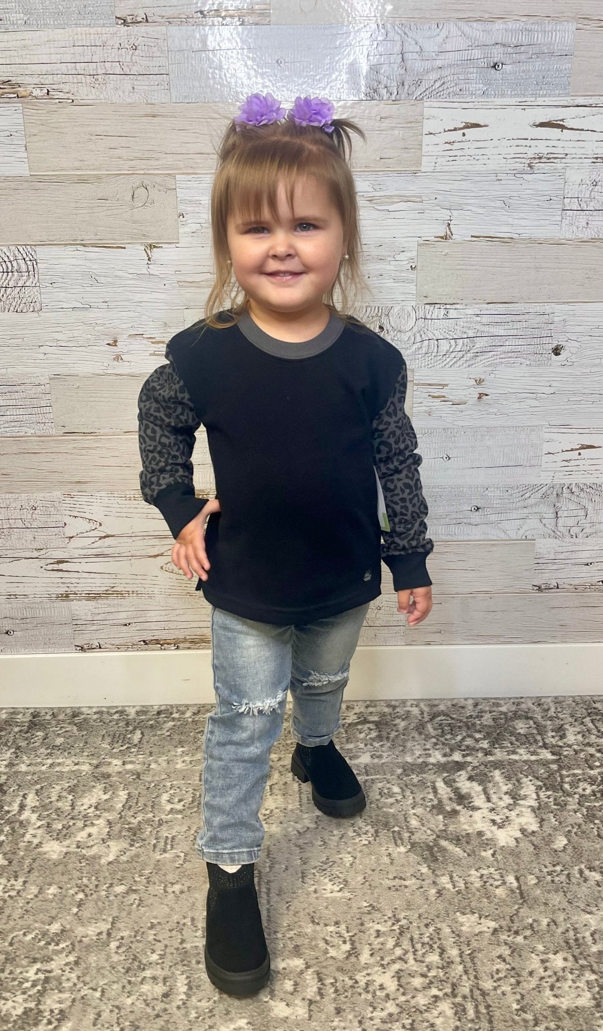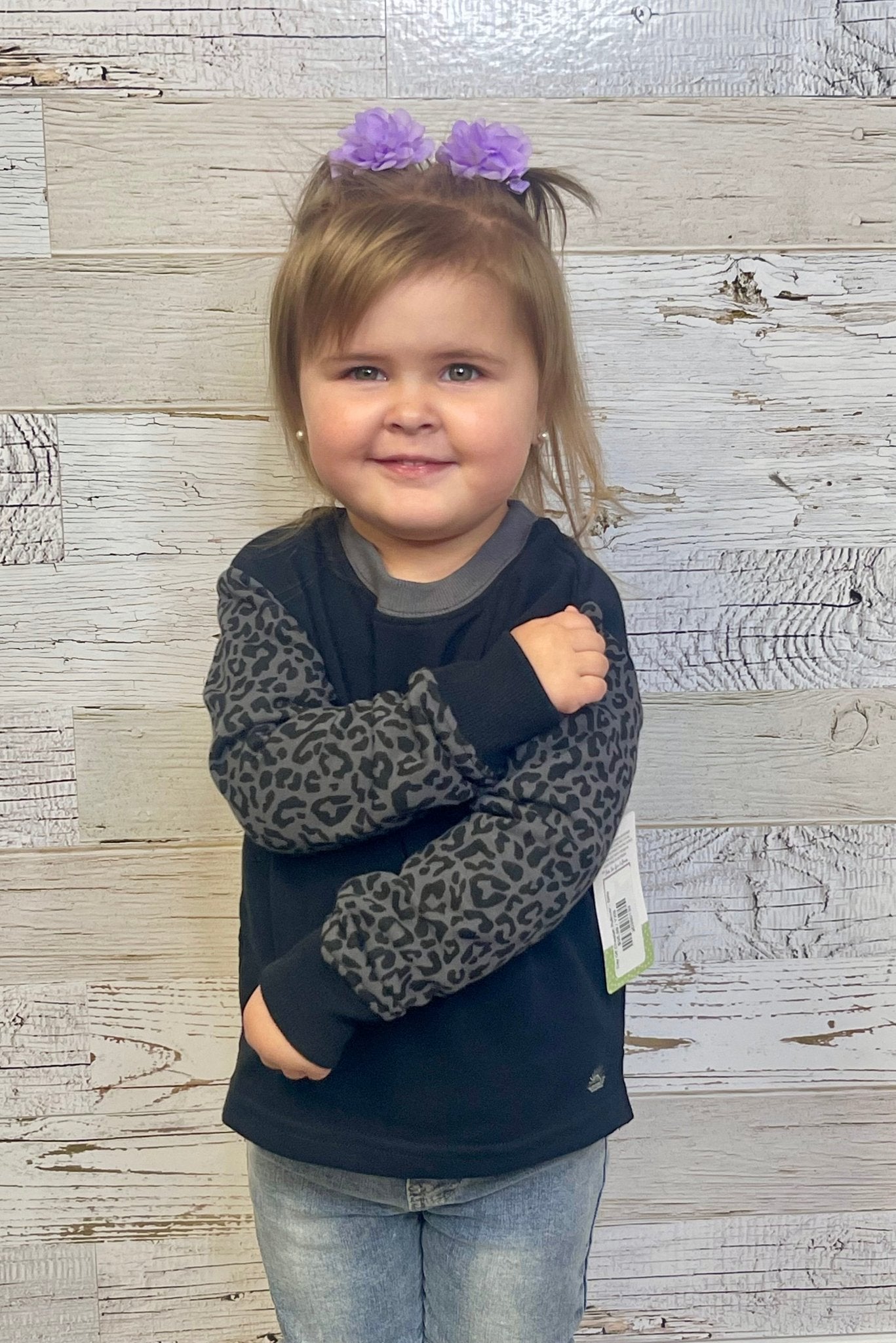 Keep cozy and stylish with the Day Off Cheetah Pullover for girls. Featuring a trendy black and gray cheetah print, this playful pullover adds a fun twist to casual days. Perfect for lounging or adventures, it brings warmth and a pop of pattern to her wardrobe.