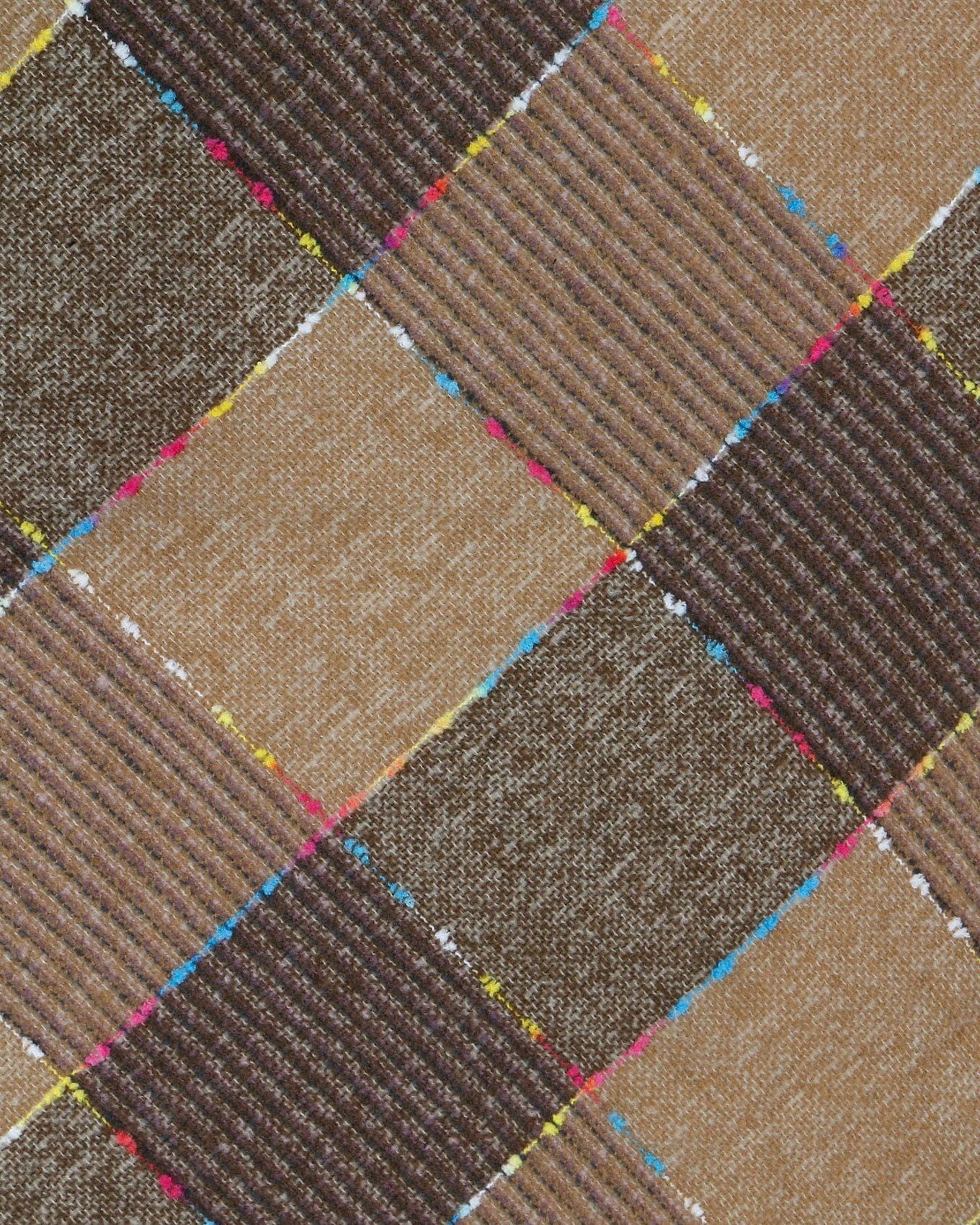 • Classic triangle scarf in tan plaid with subtle pop of multicolor yarn running throughout