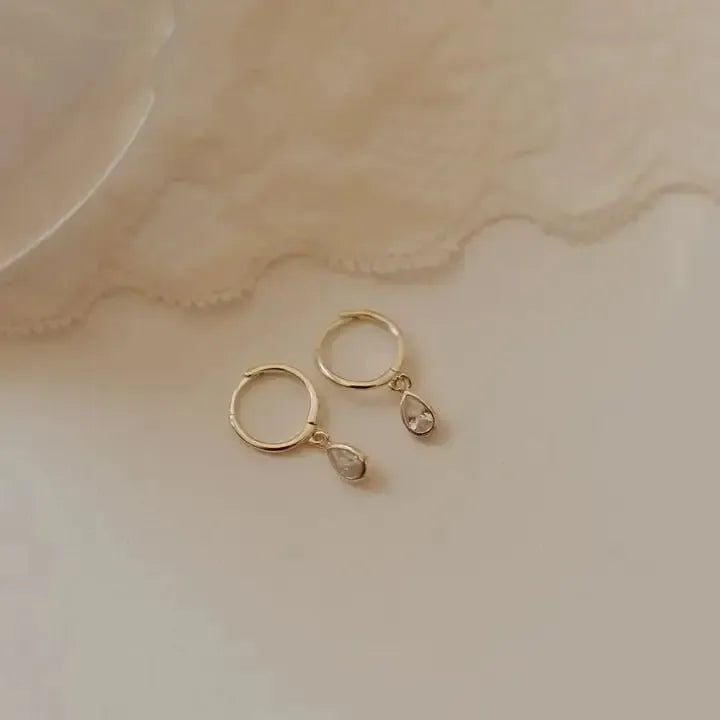 The April Raindrop Dangle Hoops are a delicate and versatile addition to your jewelry collection.