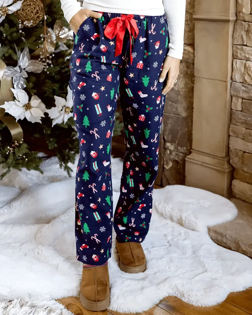 Christmas themed pattern of snowflakes, candy canes, cups of hot cocoa and more, perfect for celebrating your favorite holiday traditions!