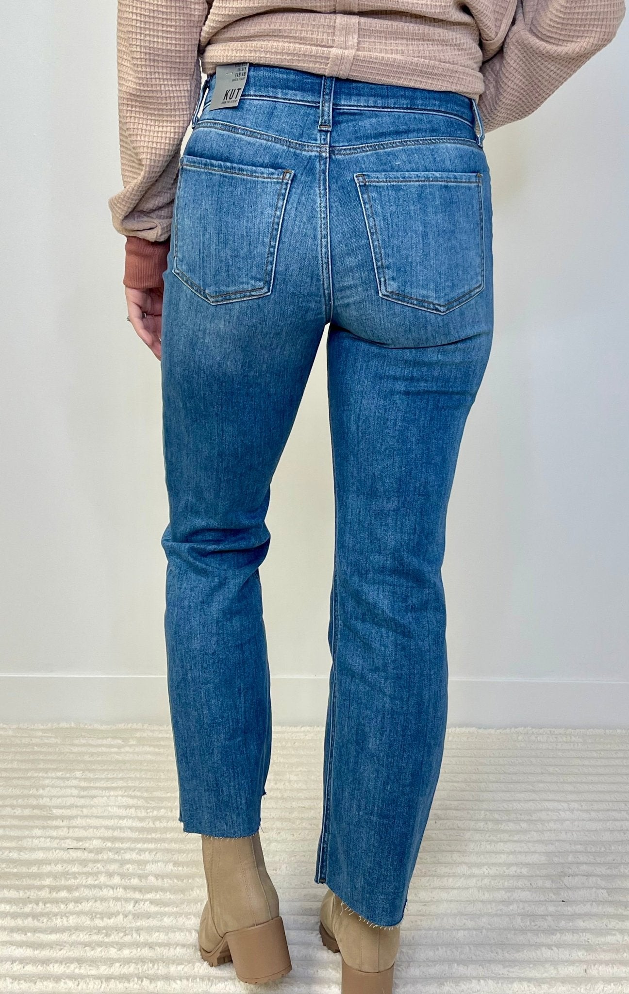 Flatter your figure with the Kelsey Ankle Jeans.  A high-rise ankle flare jeans, designed with Fab Ab for a smooth, supportive fit.