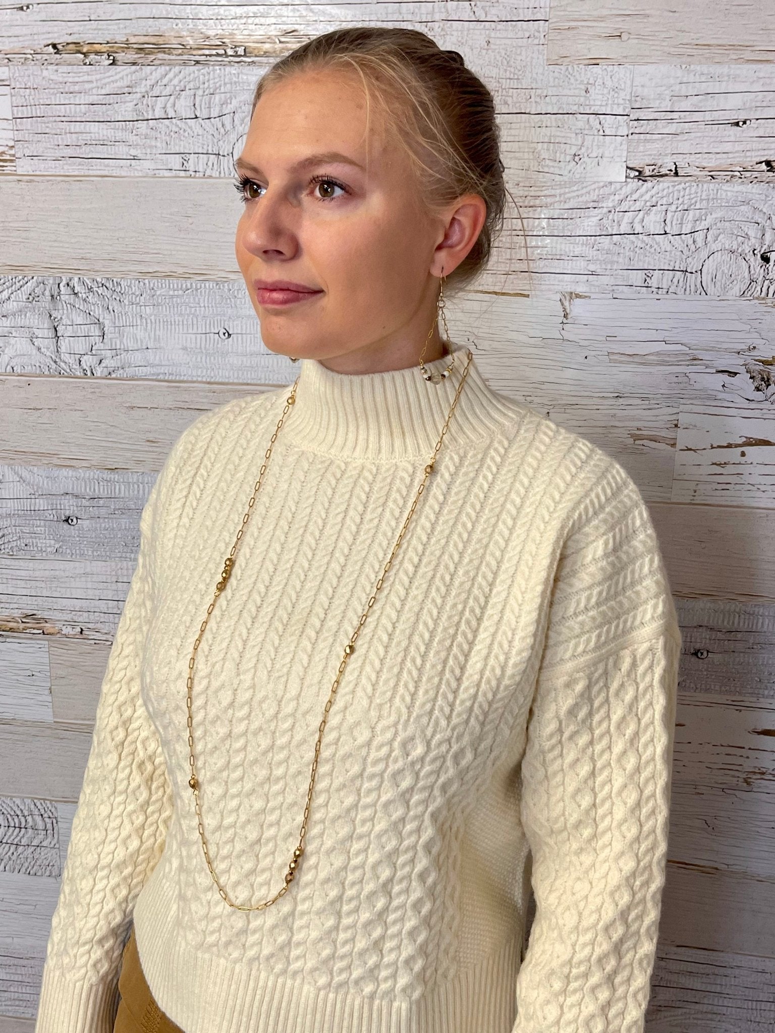 Introducing the Liss Turtleneck Sweater – a perfect blend of cozy and chic. This knit sweater features a classic cable knit design and a beautifully neutral color – perfect for any style. Experience Sadie & Sage's classic style and comfort in this stylish piece!