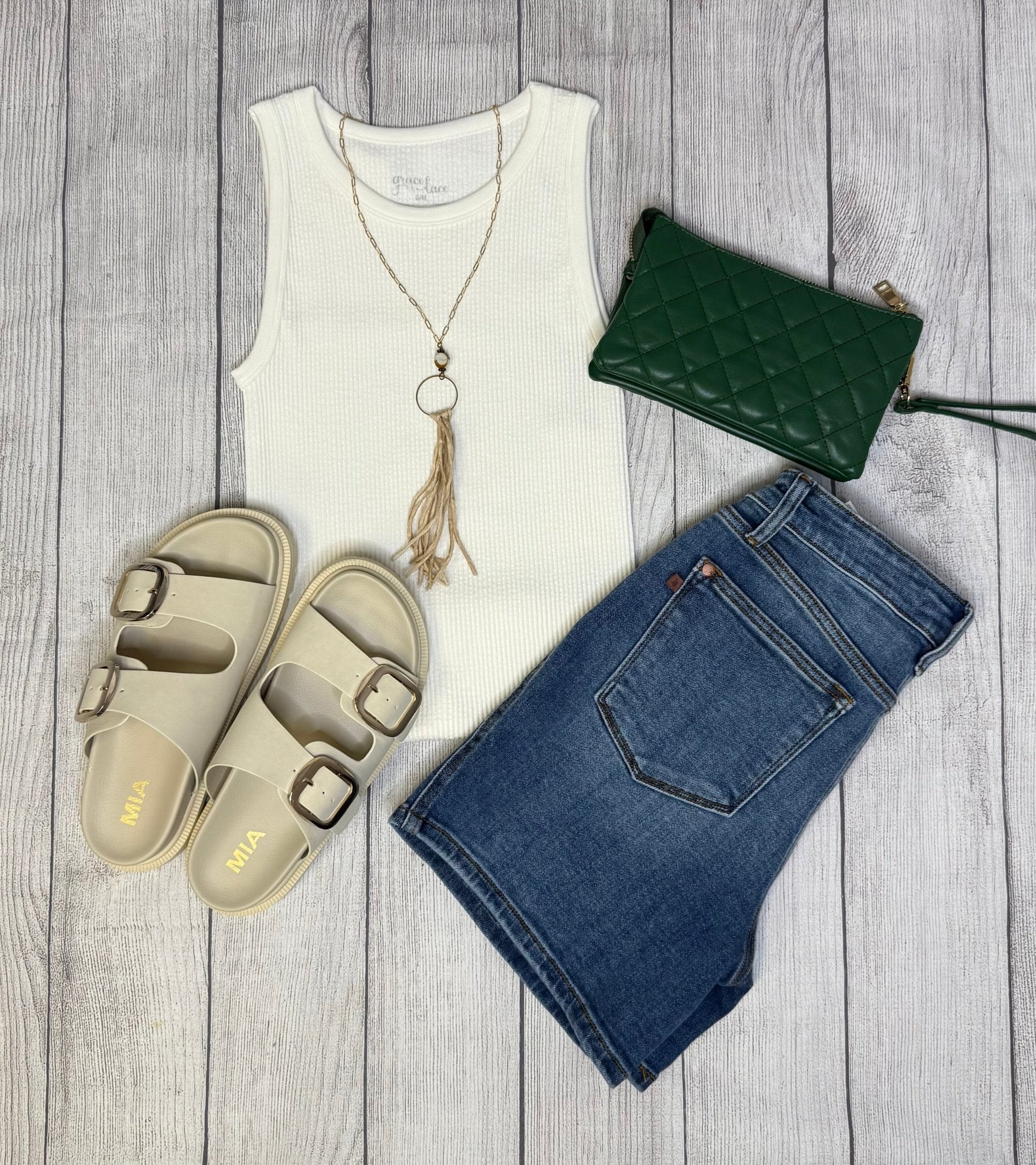 • Textured, ribbed, ivory tank top with flattering high neckline