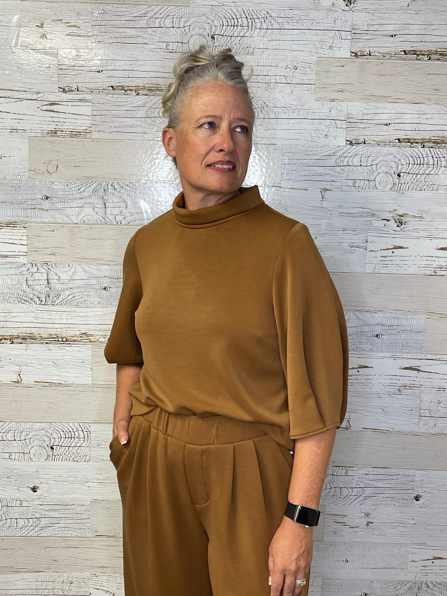 The Pleated Mock Neck Top by Democracy brings autumnal style and comfort to your wardrobe, designed with pleated elbow sleeves and a mock neck. Pair it with our matching “Ab”leisure Joggers for an effortlessly coordinated look.  It's the season for sets and this one will soon be your favorite!
