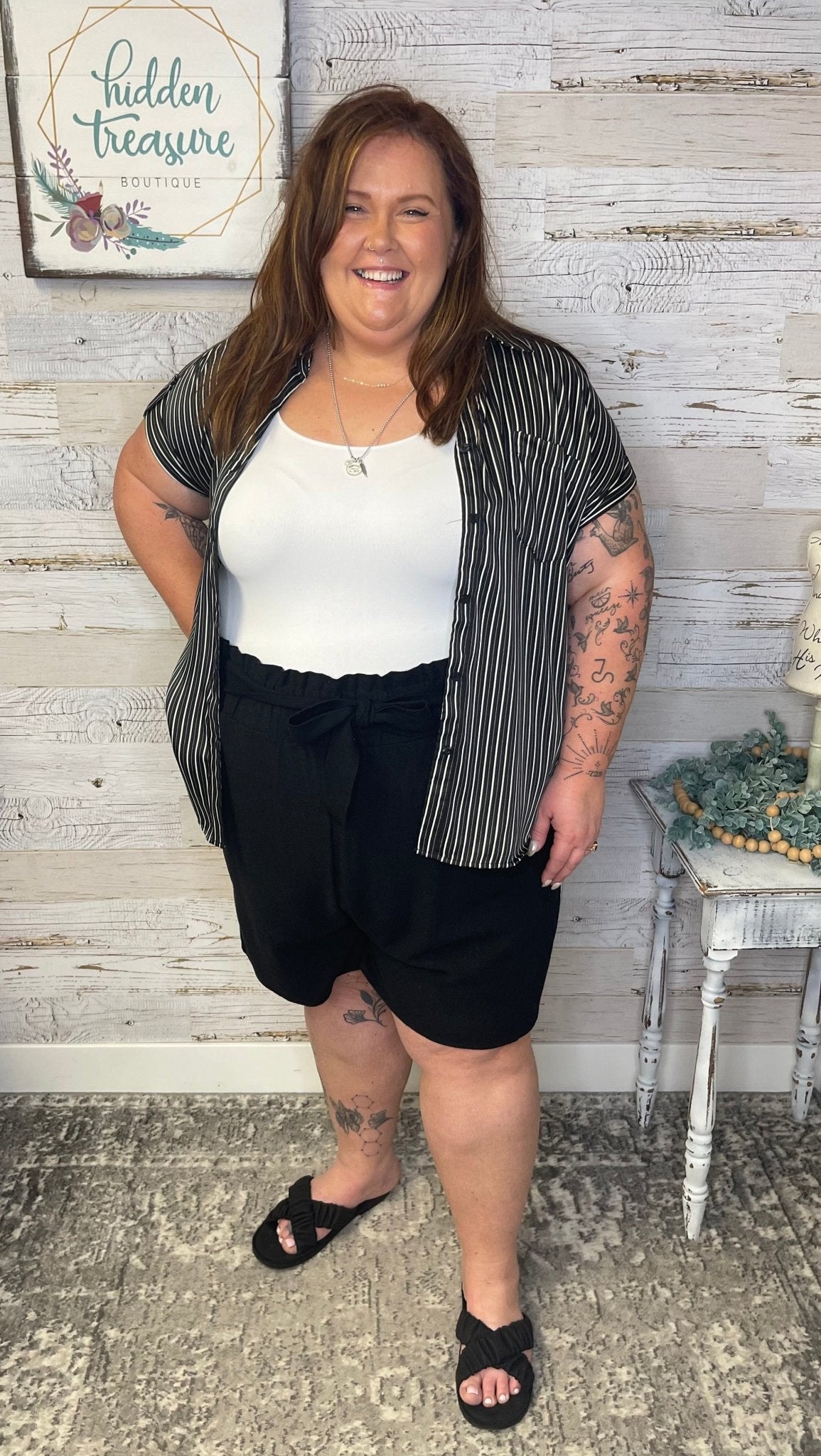 Unleash your style with our Striped Perfection Top! Made with durable polyester, this button down top offers endless fashion possibilities. Wear it open over a tank top for a relaxed look, or closed with white denim for a more chic vibe. Perfect for curvy girls looking to make a statement!