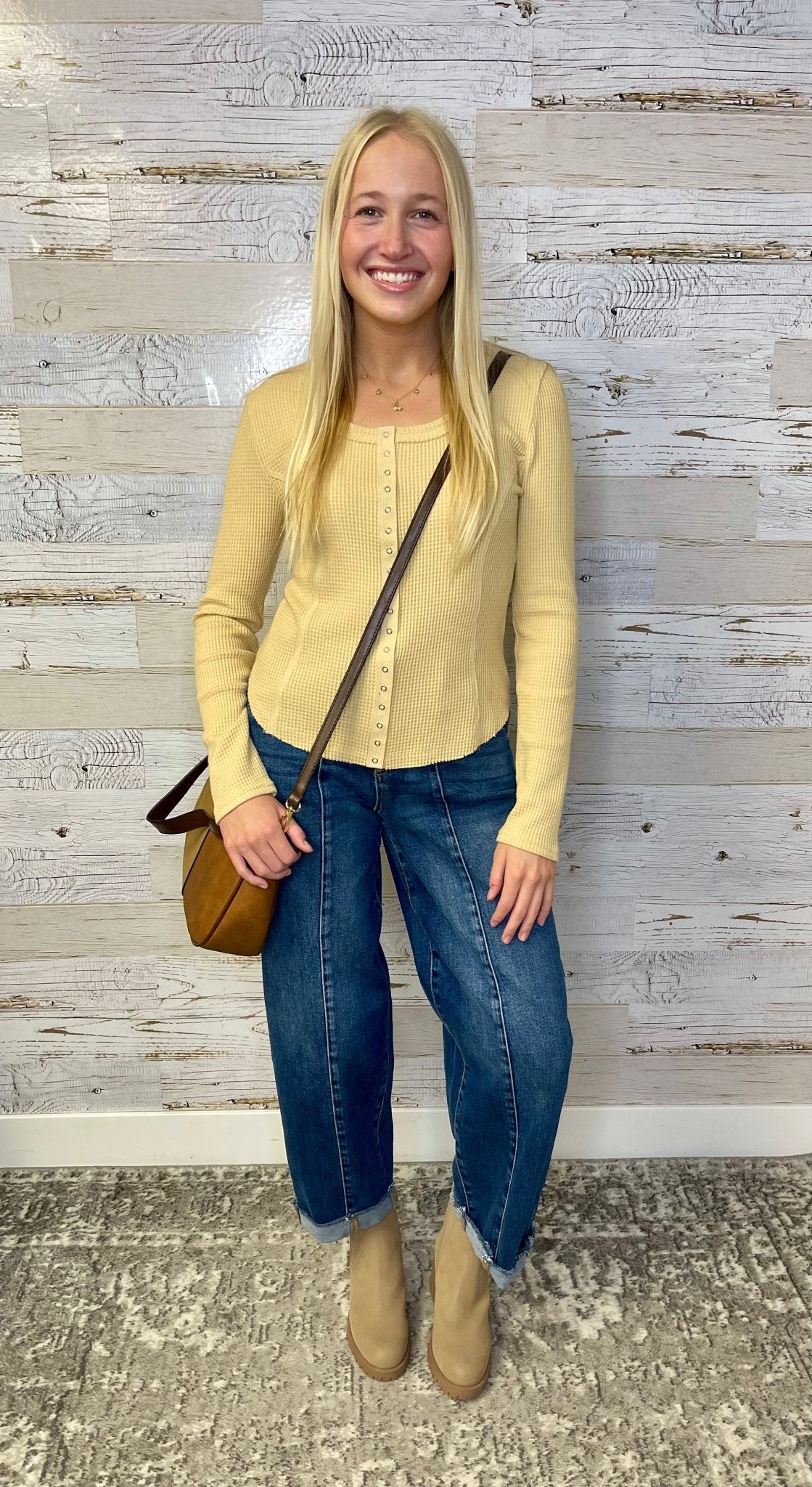 Elevate your everyday style with the Darcy Barrel Cuffed Jeans. Featuring a flattering high-rise fit and trendy cuffed hems, these jeans offer a modern silhouette that enhances your shape. The versatile mid-wash finish makes them easy to pair with any top, perfect for both casual outings and chic looks. Stay on trend and comfortable all day long with this must-have denim essential.
