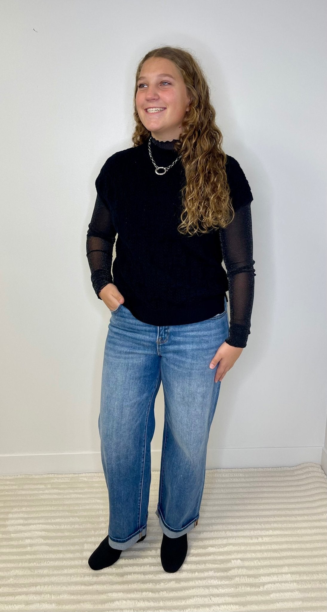 Mock Neck Bubble Hem Sweater - Shop Hidden Treasure Boutique
